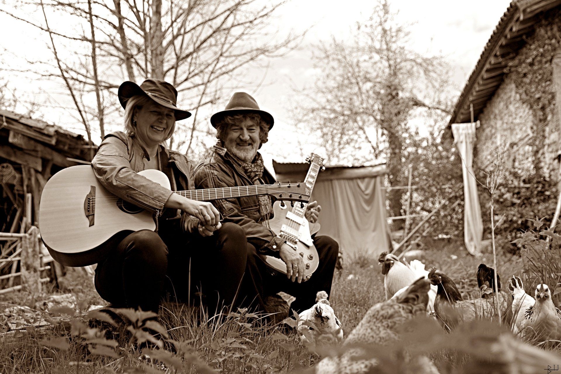 Né en 2015, le groupe lotois « Bleu Charrette » est le résultat d’une rencontre entre deux musiciens-auteurs-interprètes multinstrumentistes, l’un britannique : James Armstrong (chant, guitares (acoustique+électrique+basse, accordéon, mandole), harmonica), et l’autre française, d’origine néerlandaise, Sacha Touw (chant, guitare acoustique, harmonica, cajon, clavier).